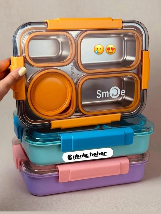 لانچ باکس استیل smile با چهار قسمت مجزا