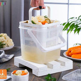 این ظرف ترشی ها یه سبد داره که به وسیله یه قلاب روی بدنه ظرف سوار میشه و آب کامل ازش خارج میشه و شما راحت می تونی از پنیر و شور و برداری. سه سایز مختلف داره که به نظرم توی سایز بزرگش می تونی حتی خیارشور درست کنی.